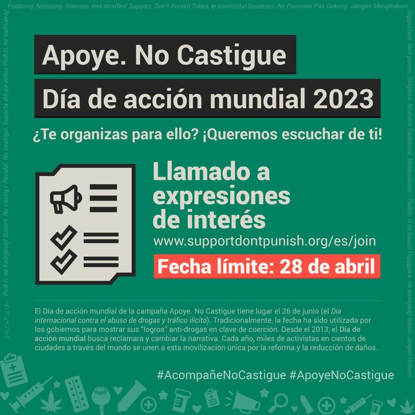 Durante más de una década, la campaña Apoye. No Castigue ha potenciado una red global y descentralizada de personas hacedoras de cambio en materia de políticas de drogas y reducción de daños. No para esperar que aparezca la proverbial ‘ventana de oportunidad’ para el cambio, ¡sino para crear condiciones para abrirla de par en par!